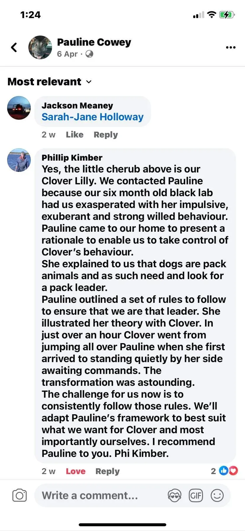 I use techniques you can use right now. You'll see immediate changes in your dog's behaviour, without weeks of intensive training. You'll see immediate changes in your dog's behaviour during the consult.